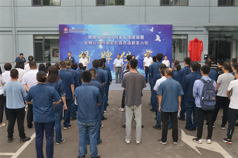 7月22日,陜鋼集團(tuán)項(xiàng)目檔案管理培訓(xùn)暨龍鋼公司檔案室擴(kuò)容改造新室入住揭牌儀式在龍鋼公司檔案室樓前順利舉行。韓城市檔案局副局長孫燕、寶山鋼鐵公司檔案咨詢總監(jiān)葛敏、陜西金銀島建筑工程有限公司董事長張忠潮、陜煤集團(tuán)綜合部業(yè)務(wù)主任張春喜、陜鋼集團(tuán)高級(jí)經(jīng)理張靜等應(yīng)邀參加,龍鋼公司副總經(jīng)理朱元洲及漢鋼公司、龍鋼集團(tuán)、創(chuàng)新研究院以及脫硫提升、煉鋼技術(shù)改造等項(xiàng)目部、施工單位檔案負(fù)責(zé)人參加儀式。