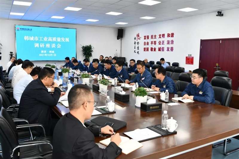 10月1日,國(guó)慶節(jié)當(dāng)天,韓城市委書(shū)記亢振峰,市委常委、常務(wù)副市長(zhǎng)張景鋒帶領(lǐng)發(fā)改委、工信局、自然資源局、經(jīng)開(kāi)區(qū)、龍門(mén)鎮(zhèn)等部門(mén)負(fù)責(zé)人到公司進(jìn)行工業(yè)高質(zhì)量發(fā)展調(diào)研,并召開(kāi)座談會(huì)。公司領(lǐng)導(dǎo)陳驍、劉安民、馮偉、王建軍及相關(guān)部門(mén)負(fù)責(zé)同志陪同調(diào)研。