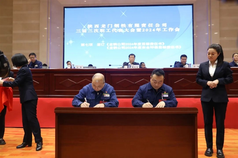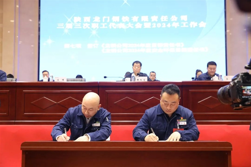 會(huì)上還傳達(dá)學(xué)習(xí)了陜煤集團(tuán)、陜鋼集團(tuán)三屆三次職代會(huì)暨2024年工作會(huì)精神,進(jìn)行了民主評(píng)議領(lǐng)導(dǎo)干部。書(shū)面審議并通過(guò)了龍鋼公司《2023年經(jīng)營(yíng)業(yè)績(jī)完成情況報(bào)告》《2023年安全環(huán)保目標(biāo)責(zé)任完成情況報(bào)告》《2023年“三公經(jīng)費(fèi)”支出情況報(bào)告》《2023年工資集體協(xié)商協(xié)議執(zhí)行情況報(bào)告》《三屆二次職代會(huì)提案落實(shí)情況及三屆三次職代會(huì)提案征集情況報(bào)告》《2024年工資集體協(xié)商協(xié)議(草案)》《2024年女職工權(quán)益保護(hù)專項(xiàng)集體合同(草案)》。