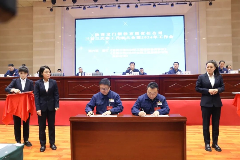 馮偉代表行政方與薛社康代表職工方簽訂了《龍鋼公司2024年工資集體協(xié)商協(xié)議》《2024年女職工權(quán)益保護(hù)專項(xiàng)集體合同》。