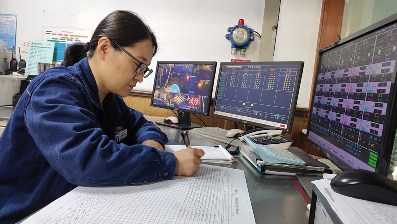 連鑄生產(chǎn)節(jié)奏快,唯有細致認真,才能保證生產(chǎn)正常順行,相里穎一邊調(diào)整電腦上的水量參數(shù),一邊做記錄,并聯(lián)系電工、鉗工、儀表、動力水系統(tǒng)等關(guān)聯(lián)人員到4#連鑄機。作為一名主控工,她的主要工作職責(zé)就是密切監(jiān)控配水系統(tǒng)參數(shù)、關(guān)注各冷卻段水量、壓力等,監(jiān)控好鋼坯拉速、澆鑄時間,在換包、重接、停開流等特殊情況下正確操作,及時做好廣播及信息傳遞、認真填寫交接班記錄及主控記錄。面對企業(yè)當(dāng)前嚴峻形勢,她時刻嚴格要求自己,及時傳遞準確無誤的信息,為打贏翻身仗發(fā)揮“半邊天”作用。