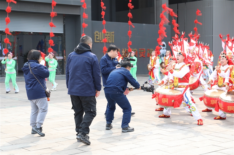 3月11日10:00,拍攝組在龍鋼公司煉鐵廠5#高爐拍攝龍鋼威風鑼鼓。
