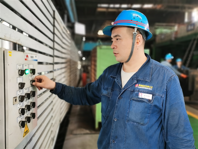 隨著氣溫逐漸升高,生產(chǎn)線就像蒸籠一般,溫度不言而喻,即使經(jīng)受高溫的炙烤,但加熱爐工長梁磊仍堅守在生產(chǎn)現(xiàn)場。早上8:00,他和往常一樣了解完夜班生產(chǎn)情況后,準備對煤氣區(qū)域點檢情況進行復(fù)查,只見他查驗煤氣檢測儀、檢查大學(xué)生劉思超勞保穿戴規(guī)范后,兩人一起來到加熱爐平臺查看設(shè)備運轉(zhuǎn)情況、檢測煤氣濃度。一邊檢測一邊給劉思超講解加熱爐工藝操作和原理,時不時看看劉思超所記錄的知識點是否正確。隨后,兩人又來到加熱爐風(fēng)機房查看設(shè)備運轉(zhuǎn)狀況,一圈轉(zhuǎn)下來,他們滿頭大汗,稍微擦拭后,便返回操作臺對檢查情況進行總結(jié),他們用敬業(yè)完成這份“高烤”測試考卷,以扎實的專業(yè)基礎(chǔ)知識迎接未知的“大考”。