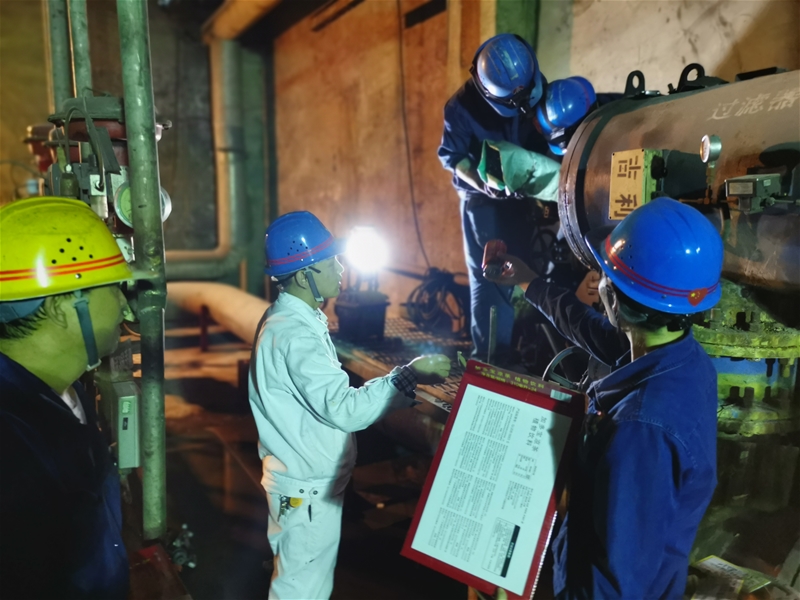 “今天的檢修只有兩個(gè)小時(shí),大家的任務(wù)已經(jīng)明確,停機(jī)后迅速行動(dòng),必須在規(guī)定時(shí)間內(nèi)高質(zhì)量完成檢修工作。”即將停機(jī),連二作業(yè)長王小慶強(qiáng)調(diào)道。
