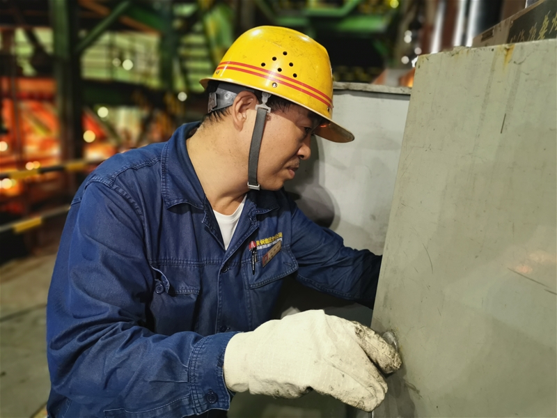 剛剛停機(jī)的現(xiàn)場,被熱浪團(tuán)團(tuán)包裹,像極了一個(gè)巨型蒸籠。檢修時(shí)間只有兩小時(shí),這對(duì)他們來說,無疑是一個(gè)挑戰(zhàn),大家等不及設(shè)備溫度降下來,就迫不及待地來到各自負(fù)責(zé)區(qū)域,一瞬間,澆鋼區(qū)、二冷室、拉矯機(jī)、輥道旁……人頭攢動(dòng)、熱鬧非凡。二冷室內(nèi)潮濕悶熱,作業(yè)環(huán)境復(fù)雜,讓人呼吸都變得困難,幾名身穿白色阻燃服的中包工,順著噴淋管爬上爬下,他們腳踩在細(xì)細(xì)的支架上。這群“蜘蛛俠”在縱橫交錯(cuò)的管道間,隨意調(diào)整著身體,有的仔細(xì)清理噴咀,有的認(rèn)真切割冷鋼,這看起來困難重重的工作,他們卻游刃有余。不一會(huì),他們厚厚的工作服被汗水浸濕,臉上的汗水也在大負(fù)荷照明燈下泛著亮光??杀M管如此,他們的目光始終盯在設(shè)備上,沒有半分懈怠。