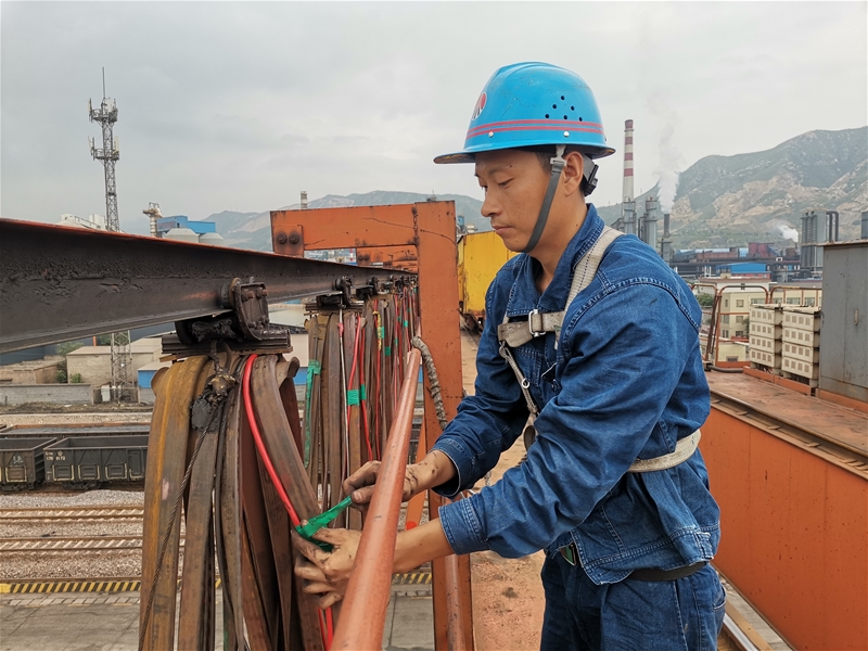 新站龍門吊鋼絲繩彎曲變形,必須停車檢修。時(shí)間緊,任務(wù)重,班組長(zhǎng)段曉虎迅速制定好維修方案,安全員老劉布置好各項(xiàng)安全措施,一場(chǎng)檢修戰(zhàn)斗正式開始。摸著滾燙的扶梯,維修人員劉聰、孫宇一步一個(gè)臺(tái)階爬到龍門吊頂端,一股熱浪迎面襲來,進(jìn)入小車減速機(jī)里面,里面散發(fā)著一股濃濃的油籽的味道。“人心齊,泰山移。”上面的兩位維修人員,與地上的三位工友齊聲喊著“一二、一二……”來來回回在滾筒與吊鉤之間穿插,汗珠流到臉頰時(shí),他們就用胳膊肘擦一擦,抹得全臉都是淡淡的油污,豆粒般的汗珠沿著背夾往外流,衣服早已濕透。這樣的環(huán)境下他們毫不退縮,對(duì)鋼絲繩滾筒固定螺栓分別拆卸,一根全長(zhǎng)100多米的鋼絲繩,在他們的配合下,僅用半小時(shí)就順利完成了,筆者不由為他們點(diǎn)贊。