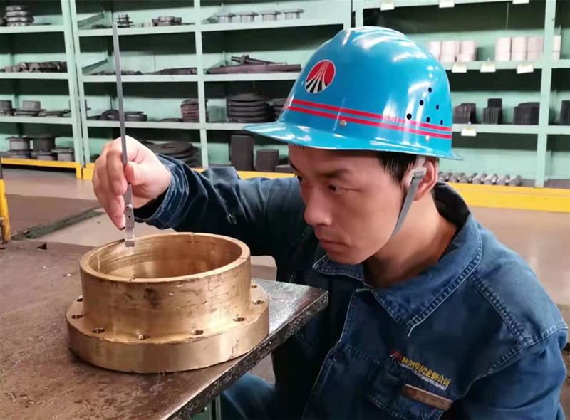 棒材一線在線使用的一臺380軋機(jī)晃動嚴(yán)重,嚴(yán)重影響軋線正常運(yùn)行。經(jīng)技術(shù)人員檢查下線設(shè)備,發(fā)現(xiàn)380軋機(jī)銅法蘭與絲杠定位面磨損嚴(yán)重,導(dǎo)致定位不準(zhǔn),軋機(jī)晃動嚴(yán)重。針對此問題,技術(shù)員決定重新測量銅法蘭與絲杠間隙,利用車床精修銅法蘭尺寸,確保安裝后與絲杠配合緊密。改造后,380軋機(jī)晃動問題得到了根本解決,確保了生產(chǎn)穩(wěn)定順行。