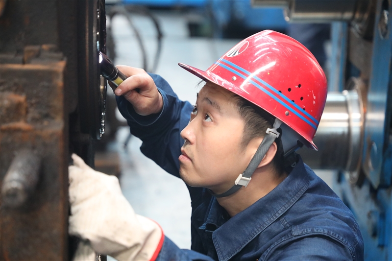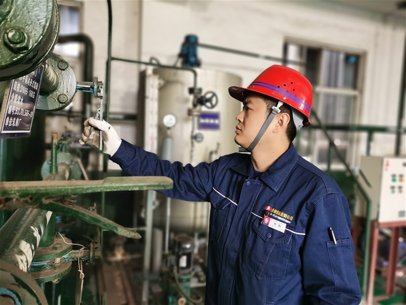 為保證生產(chǎn)順行,加熱爐工長梁磊與高溫進(jìn)行搏斗,對(duì)軟水設(shè)備閥門進(jìn)行復(fù)檢。