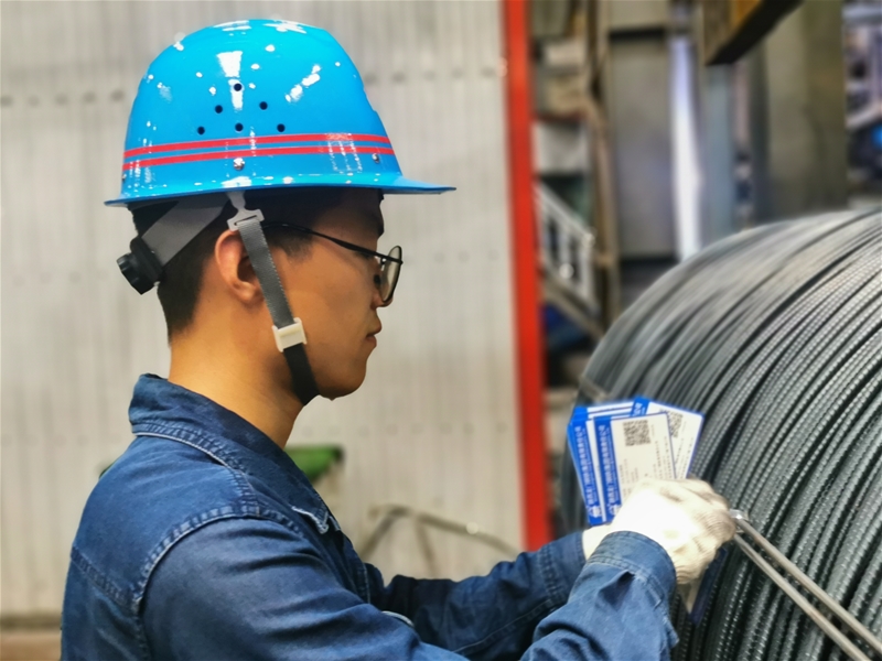 在40℃的高線成品區(qū),迎面撲來的“熱浪”對(duì)于標(biāo)牌工樊強(qiáng)早習(xí)以為常,他正穿梭于鋼卷之間,有條不紊地將二維碼標(biāo)識(shí)牌掛在鋼卷上,為鋼材出庫守好關(guān)卡,做好服務(wù)保障。