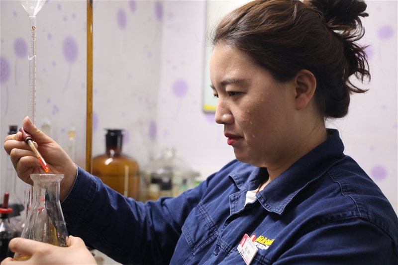 在運(yùn)行化驗(yàn)室,剛?cè)踊貋淼幕?yàn)工劉盼顧不上擦拭頭上的汗水,立即投入水質(zhì)化驗(yàn)中。“確保水質(zhì)達(dá)標(biāo),優(yōu)質(zhì)水質(zhì)上線使用,為鋼材性能提升提供有力保障。”是她履行崗位的諾言。