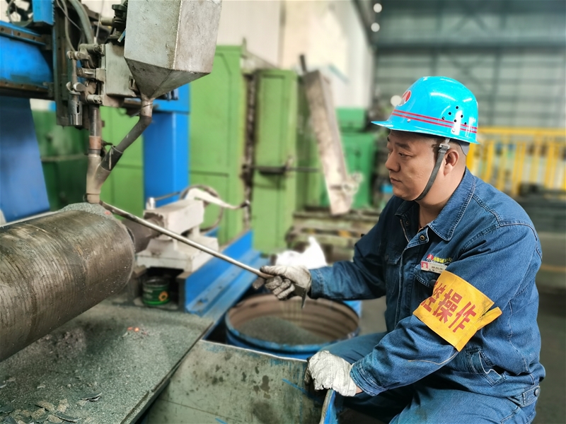 在板帶預(yù)裝工段,車工郝趙軍在堆焊機(jī)前,一邊加料,一邊對(duì)堆焊質(zhì)量進(jìn)行監(jiān)護(hù),汗水濕透了衣衫,但他依然堅(jiān)守初心和匠心,將簡單的工作做到極致。