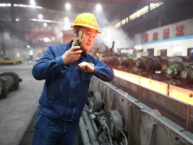 在板帶作業(yè)區(qū)40℃2CS操作臺(tái)里,操作室外火紅的鋼坯映紅了2CS操作工薛孟波的臉頰,他顧不上炙熱,正全神貫注進(jìn)行出鋼操作,在高溫“蒸拿”房里書寫屬于自己的青春篇章。