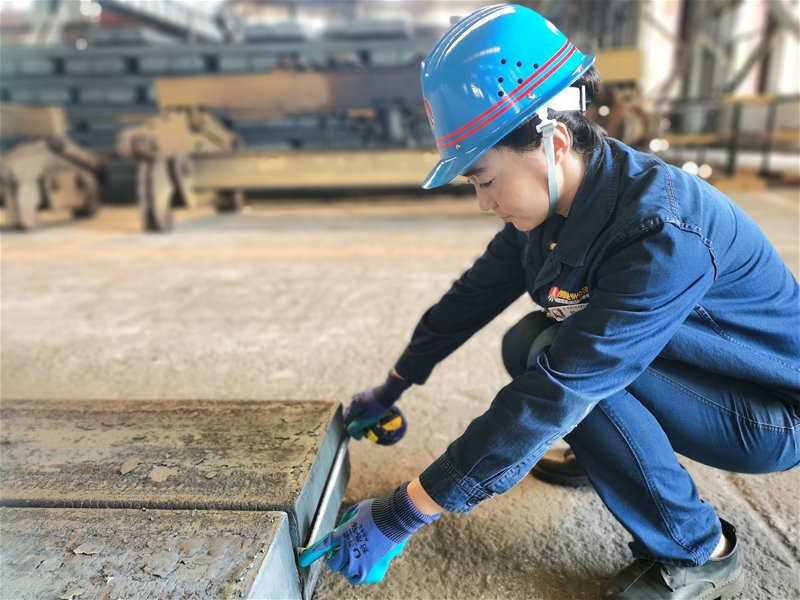 在45℃原料跨,爐號(hào)班長劉婕以身作則,堅(jiān)持做好鋼坯測(cè)量工作,為身邊的爐號(hào)工樹立榜樣,在安全生產(chǎn)中發(fā)揮半邊天作用。