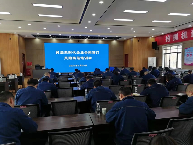 為深入學習貫徹習近平總書記法治思想,落實集團公司法治建設相關要求,全面開展普法宣傳教育活動,3月24日,公司舉行了民法典時代企業(yè)合同簽訂風險防范培訓會。公司黨委委員、總經(jīng)理助理、副總會計師邢宏昌,副總經(jīng)理姜劍鋒以及各單位合同管理員、風險防控員等參加。