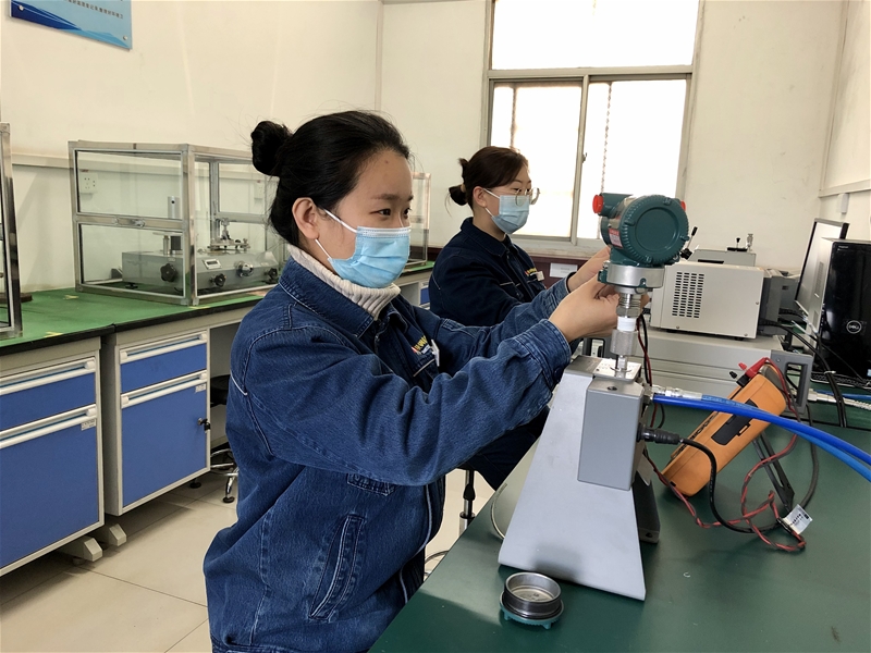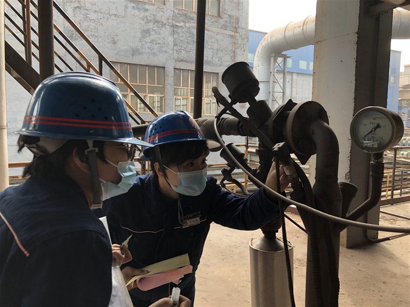 為確保生產(chǎn)正常運(yùn)行,她們置身生產(chǎn)一線,利用便攜式檢測(cè)設(shè)備,對(duì)壓力、溫度、流量、電磁等測(cè)量?jī)x器進(jìn)行在線檢測(cè)。壓力設(shè)備采取相同壓力源多點(diǎn)位進(jìn)行比對(duì),計(jì)算誤差值是否在允許范圍內(nèi);溫度類(lèi)設(shè)備先使用紅外測(cè)溫儀進(jìn)行測(cè)試,再根據(jù)主控室顯示的數(shù)據(jù)進(jìn)行比對(duì),判定其是否合格;電能表則通過(guò)標(biāo)準(zhǔn)表與被檢表相連接,通過(guò)變比值計(jì)算出電流值,根據(jù)現(xiàn)場(chǎng)電壓值與標(biāo)準(zhǔn)器示值進(jìn)行比對(duì);在線流量積算儀通過(guò)與多功能信號(hào)儀連接,在線檢測(cè)輸出信號(hào)值是否在允許范圍內(nèi)……她們瘦小的身影穿梭在縱橫交錯(cuò)的設(shè)備與管道間,為一臺(tái)臺(tái)測(cè)量設(shè)備檢測(cè)、分析,與現(xiàn)場(chǎng)工作人員進(jìn)行溝通,確認(rèn)每一臺(tái)設(shè)備性能正常。