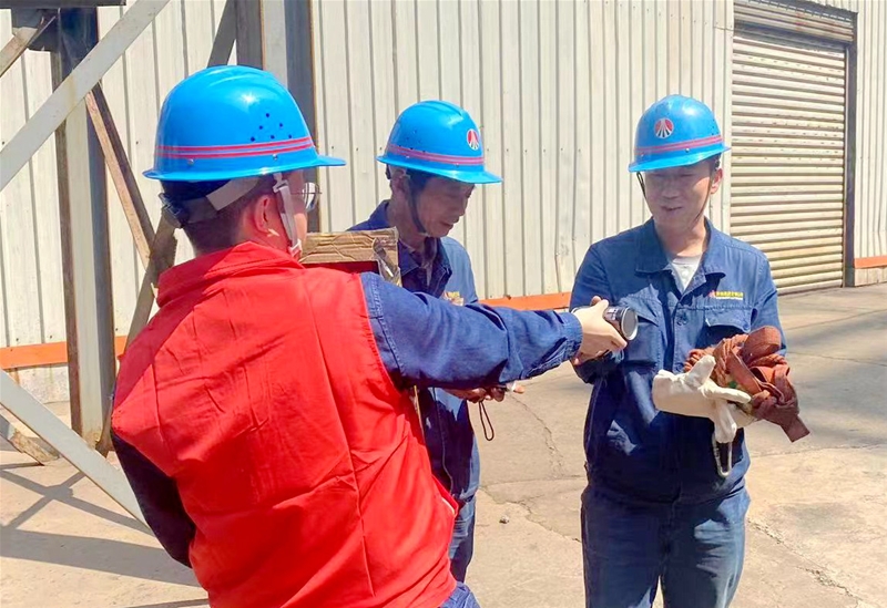 在檢修現(xiàn)場,有這樣一支紅色愛心服務(wù)隊,他們是由平均年齡35歲的青年志愿者組成。他們主動請纓,為檢修現(xiàn)場參檢人員夏檢送清涼,一起戰(zhàn)高溫、斗酷暑。他們抱著防暑降溫飲品,登上20多米高爐平臺上,在送清涼的同時,還時不時提醒參檢人員注意現(xiàn)場安全。“這么熱的天氣,大家干完活休息一下,我們這里為大家準(zhǔn)備了補充能量的飲品和飲用水。”青年志愿者王丹丹將一瓶瓶降溫飲品遞到參檢人員手里。“大家作業(yè)前把藿香正氣水喝上,以防中暑。”“上下臺階一定要注意腳下……”從這些溫馨的提示話語中,盡顯滿滿的關(guān)愛之情。