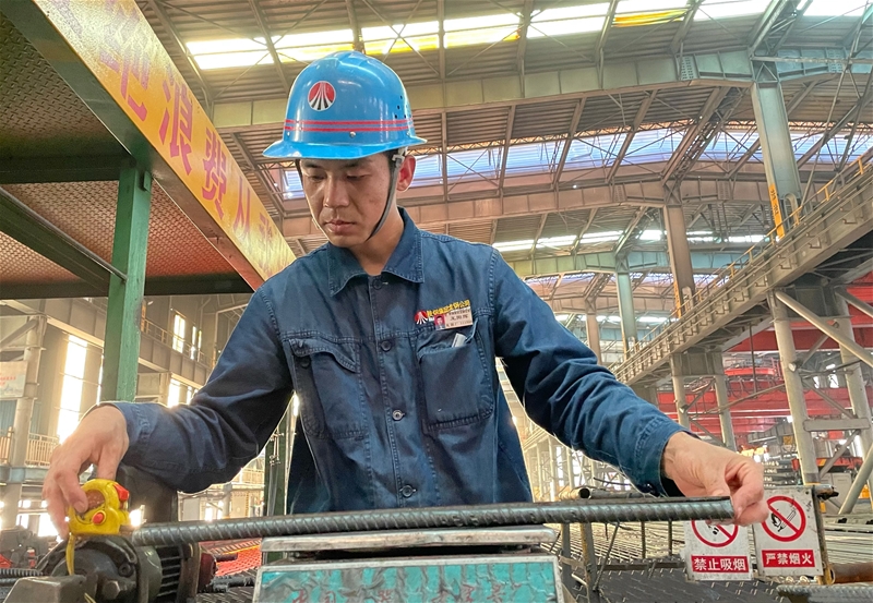 在軋鋼廠棒三生產(chǎn)線上,軋機(jī)轟鳴,鋼材飛馳……工人在各自的崗位上一絲不茍地工作。軋機(jī)一旁,軋鋼工長(zhǎng)王陽(yáng)輝正拿著卡尺細(xì)致地對(duì)紅鋼進(jìn)行取樣,確保每支鋼材的直徑都在誤差范圍內(nèi)……