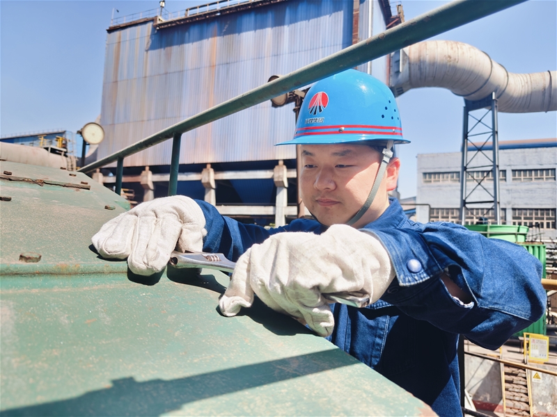 “再將這顆螺絲往前擰一圈剛好卡住,減速機(jī)運(yùn)行才能減少震動(dòng)……”設(shè)備點(diǎn)檢員薛濤一邊操作著一邊給一旁的工友講道。他們協(xié)同作戰(zhàn),認(rèn)真檢查,嚴(yán)格排查每一個(gè)環(huán)節(jié),確保檢修任務(wù)圓滿收官。