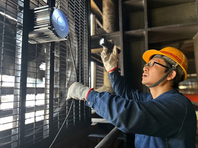 該裝置通過產(chǎn)生負壓效應(yīng),可以排出生產(chǎn)過程中產(chǎn)生的熱空氣,并帶入新鮮空氣,降低室內(nèi)溫度,實現(xiàn)通風(fēng)換氣的目的,保證室內(nèi)空氣質(zhì)量,創(chuàng)造出適宜的工作環(huán)境。自該裝置投入后,該工序組織專人每天對現(xiàn)場溫度進行測量,查看運行效果,經(jīng)過連日數(shù)據(jù)對比,發(fā)現(xiàn)溫度較投入前降低10度左右,有效保護了職工身心健康,保障了人員作業(yè)安全。“沒安裝負壓風(fēng)機之前進行設(shè)備點檢,一上行車就感覺一股熱浪撲來,現(xiàn)在明顯感覺沒有之前那么熱了,這樣點檢起來,大家更仔細了……”一名天車工說道。