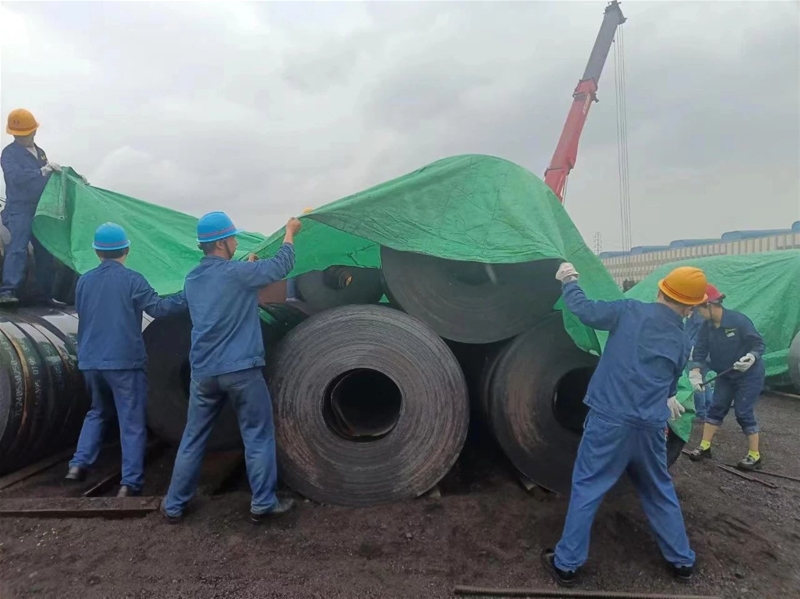 夏季雨天較多,為規(guī)范板帶外庫鋼材覆蓋,確保鋼材有效防護。每逢異常天氣,需要對板帶外庫鋼材進行篷布覆蓋。由于崗位人員緊張,加之板帶外庫篷布覆蓋工作量較大。為精準、高效、快速地完成覆蓋工作,該工序發(fā)出“提升能力、轉(zhuǎn)變作風(fēng)、狠抓落實”的號召,機關(guān)人員轉(zhuǎn)作風(fēng)、強擔(dān)當(dāng),從實際出發(fā),參與板帶外庫鋼材覆蓋工作,解決實際問題。同時,為提高服務(wù)效能,每年酷暑時期,主辦以上管理人員深入生產(chǎn)一線進行挑短尺、線材剪頭尾以及板帶牽頭作業(yè)義務(wù)勞動。開展一線“送清涼”活動,為職工送去防暑降溫物品,把關(guān)心和關(guān)愛送到每位職工心中,以務(wù)實的作風(fēng)為職工辦實事,拉近與職工的距離,提高服務(wù)水平,提升工作質(zhì)效。