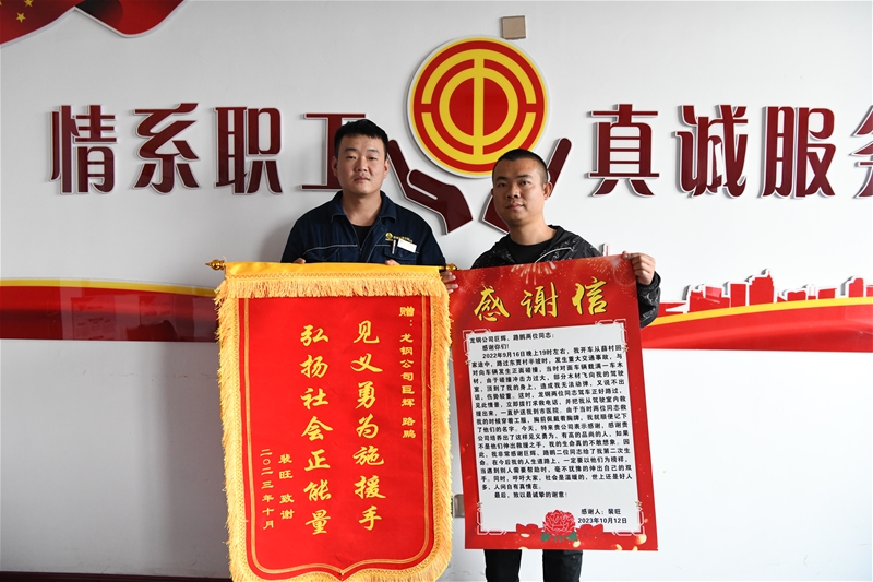 生活中的巨輝更是一個(gè)“熱心腸”。2022年9月16日19時(shí)左右,巨輝在下班途中目睹了一起嚴(yán)重的交通事故。面對(duì)突如其來(lái)的緊急情況,他臨危不懼,立刻沖上前去,根據(jù)自己平時(shí)積累的一些急救知識(shí)和經(jīng)驗(yàn),與工友路鵬一起對(duì)事故受害者進(jìn)行施救。同時(shí),分頭撥打120急救和122交警大隊(duì)電話報(bào)警,爭(zhēng)取到最短的救援時(shí)間。正是因?yàn)樗幨鹿麛?,受傷人員得到了有效救治,最終轉(zhuǎn)危為安。他默默無(wú)聞地保護(hù)他人生命安全,用實(shí)際行動(dòng)彰顯了龍鋼人向上向善的優(yōu)秀品質(zhì)和社會(huì)責(zé)任擔(dān)當(dāng),成為公司全體干部職工精神文明的楷模。