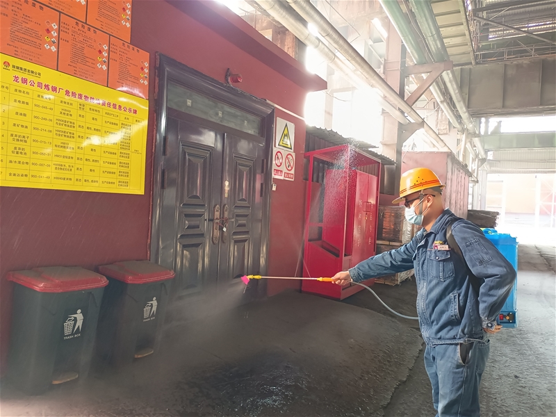 1月11日晚上11點(diǎn),安全員肖鵬飛正在給陸續(xù)到崗的職工測(cè)量體溫,檢查口罩佩戴情況,并詳細(xì)詢問每個(gè)職工生活軌跡,然后一項(xiàng)項(xiàng)認(rèn)真填寫到檢測(cè)表上,一項(xiàng)項(xiàng)工作緊張而有序。等交接班的職工全部檢查完畢,一切正常,肖鵬飛長舒了一口氣,緊接著他背起幾十斤重的消毒桶,開始對(duì)區(qū)域進(jìn)行消毒,主控室、推鋼室、連鑄平臺(tái),他來回穿梭在煉鋼廠,按時(shí)按點(diǎn)給各操作室消毒。他利用班前班后會(huì)組織職工學(xué)習(xí)《新型冠狀病毒感染的肺炎防控知識(shí)手冊(cè)》,督促引導(dǎo)職工在廠區(qū)內(nèi)、崗位上、出入餐廳、乘坐通勤車時(shí)均能持續(xù)并正確佩戴口罩。他還不定期檢查各班組的消毒記錄、口罩銷毀記錄及“一人一檔”信息卡的更新情況,準(zhǔn)確掌握職工身體情況,從嚴(yán)從實(shí)抓好疫情防控工作。