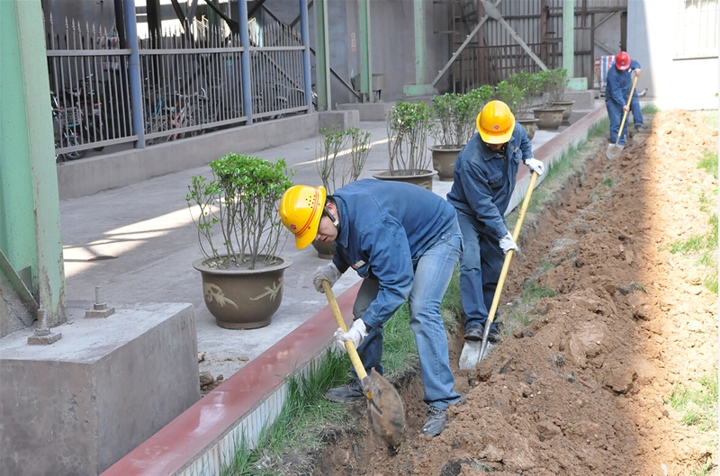 活動現(xiàn)場,大家早早來到指定綠化區(qū)域,拿好提前準備好的鐵鍬、水桶等工具。春風雖寒,但大家植樹的熱情不減,分工明確、配合默契,有的挖坑、有的松土、有的擔水、有的檢查苗木是否存活,個個忙的不亦樂乎。經(jīng)過半天的辛勤勞動,共挖樹坑30個、撿拾綠化帶100米、移植苗圃植株26棵。