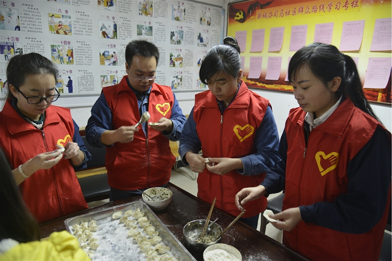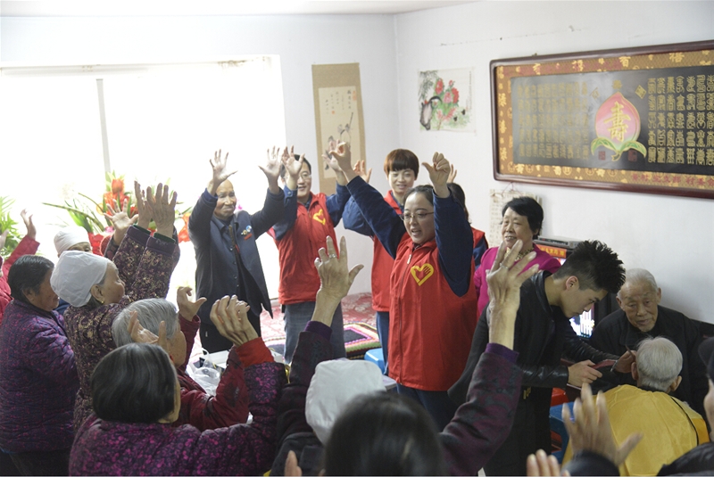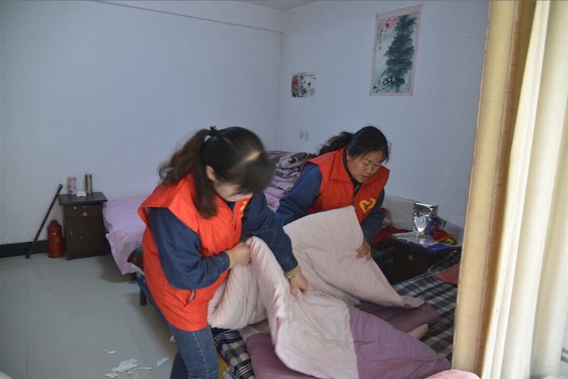 走進(jìn)敬老院,志愿者們首先為老人送上了牛奶、水果和糕點(diǎn)等營(yíng)養(yǎng)品,隨后,自由分組開(kāi)展活動(dòng),第一小組廚房幫廚,志愿者們和廚師一起為老人包餃子,和面、剁餡、拌餡、搟面皮、捏餃子……他們分工明確,相互協(xié)作,一切進(jìn)行的有條不紊。第二小組整理內(nèi)務(wù),他們挽起袖子,拖地、擦桌子、整理床鋪,不一會(huì)兒,敬老院的一切就井井有條呈現(xiàn)在老人面前。第三小組互動(dòng)談心。志愿者們和老人圍坐在一起,手拉手噓寒問(wèn)暖,了解老人的飲食起居和健康狀況。一名志愿者還為老人講述了春季養(yǎng)生知識(shí),告訴他們要注意保暖、保證睡眠、合理膳食、加強(qiáng)鍛煉,還要保持良好的心情和精神狀態(tài)?;顒?dòng)之余,志愿者們還為老人們送上了獨(dú)唱《媽媽的吻》、《小城故事》,舞蹈《感恩的心》、《北京的金山上》等娛樂(lè)節(jié)目,精彩紛呈的節(jié)目為敬老院增添了許多歡快喜慶色彩,獲得了敬老院老人的陣陣熱烈掌聲。歡聲笑語(yǔ)中,第一小組已經(jīng)將熱氣騰騰的餃子端上了餐桌,大家將老人們攙扶到飯桌旁,看著他們大口大口吃著香噴噴的餃子,志愿者們個(gè)個(gè)臉上都露出了開(kāi)心的笑容。