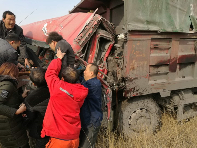 2017年11月的一天,他和同事出差前往山西省河津市對(duì)高鈣灰進(jìn)行市場(chǎng)調(diào)研。返回途中,他發(fā)現(xiàn)兩輛車因交通事故導(dǎo)致司機(jī)被擠壓在駕駛室內(nèi),一人已經(jīng)昏迷,另一人雙腿無法動(dòng)彈,頭部正在流血。他當(dāng)機(jī)立斷,喊了一嗓子“停車,趕快幫忙救人!”