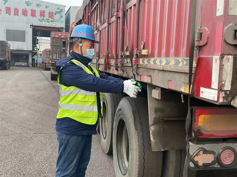 受疫情影響,公司近段時間對外來汽運車輛采取不同措施,落實“外防輸入”,最大限度保供生產用料。少了面對面的接觸,但服務不能打折扣、降標準。北門初檢組長曹志永正在提醒進入初檢大廳的辦票人員:“您好,請排隊間隔一米登記,測量體溫,出示行程碼、健康碼、24小時核酸報告。”雖然廣播的語音在播放,但他依然穿著防護服耐心地對司機進行溫馨提示。面對管控封條的車,他不怕辛苦和危險,緊跟著兩個工作人員不時遞水和面包,檢查車輛外觀封簽和水箱情況,跑前跑后替司機辦理進廠票據(jù)和卡,然后囑咐司機全程不下車,佩戴好口罩,保護好自己。