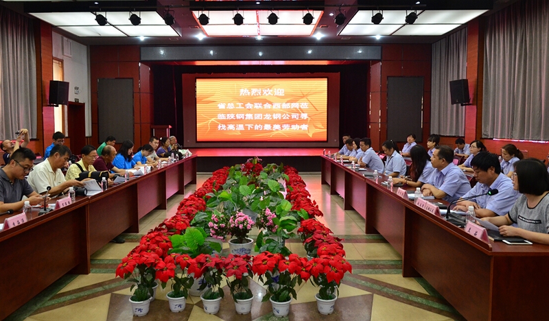 “尋找高溫下的最美勞動者”采風組一行首先在公司三樓會議室召開了座談會,陜鋼集團女工委主任、工會辦副主任蘭茹、公司工會主席趙春棠分別就陜鋼集團和龍鋼公司的企業(yè)概況、生產組織、工會工作基本情況作了簡要介紹。西部網記者就相關問題與參會職工代表進行了交流。