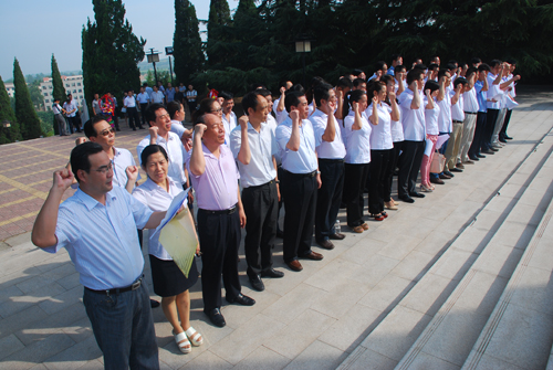 7月1日上午,為紀(jì)念中國共產(chǎn)黨建黨92年周年,陜西陜化化工集團(tuán)有限公司黨委組織公司領(lǐng)導(dǎo)班子和總經(jīng)理助理、各基層黨委、黨支部書記和新黨員到紅色教育基地——華縣高塘鎮(zhèn)渭華起義革命紀(jì)念館參觀學(xué)習(xí),并面對黨旗莊嚴(yán)宣誓,以特殊的形式迎接黨的92周歲生日。