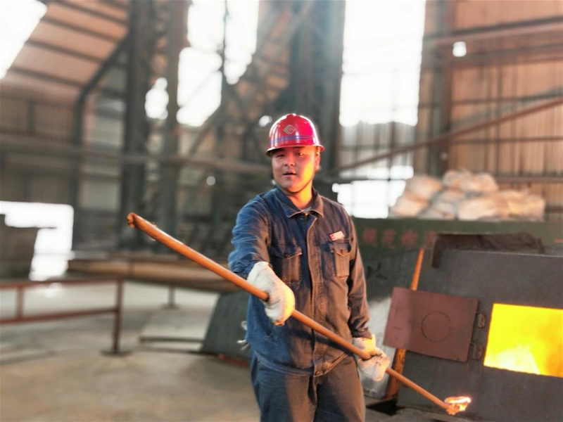 第一站來到了煉鐵廠5號高爐,在爐前班長簡單介紹完拍攝地點和安全注意事項后,我們正式進入拍攝現(xiàn)場。首先直入眼簾的是5號高爐副爐長薛永輝和爐前工人一起出鐵的火熱場面。爐前班長王拓手持鋼釬在查看出鐵口,奔涌的鐵流猶如壺口瀑布般傾瀉而出,炙熱滾燙的鐵水烤得臉膛皮膚就像蒸桑拿一樣。只見薛永輝瞅準時機,熟練地拿起取樣勺快速取出鐵樣,穩(wěn)穩(wěn)地放進盛樣盤中。“剛來爐前的新工根本熬不住這出鐵的高溫,經(jīng)常是一次取樣下來衣服就像雨淋一樣,喝幾大杯水,全排成汗了,這僅僅還只是不到三伏!我們多年來早就習(xí)慣了這種環(huán)境,現(xiàn)在還舍不得離開高爐呢”旁邊一位老爐前工很爽朗地講著他的工作??吹贸鲞@些冶煉的漢子們早已經(jīng)把這種火熱的工作當(dāng)做了生活中不可分割的一部分,他們就是高爐的守護神??吹竭@些絕美的畫面,拿著“長槍短炮”的攝影愛好者們快速按下快門,用一個個鏡頭記錄著爐前工最美的瞬間。