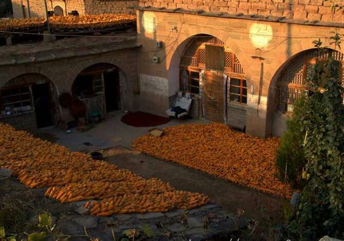 冬日的陜北,山脈連綿寂寥,可裊裊炊煙卻為這廣闊天地添了幾分色彩。天還麻麻亮的時(shí)候,陜北的婆姨就開(kāi)始忙了,堿坂上的碾轱轆悠哉悠哉的轉(zhuǎn)著。拉碾子的驢走走停停,時(shí)而偷吃一嘴玉米面,婆姨罵罵咧咧道:“你這個(gè)老家禽,給你喂時(shí)你不餡,正讓你干活你就餡歡了,噔俅。”跟著母親的孩子,懷中抱著柴草,燃燒在磨盤(pán)旁邊,給母親足夠的亮光。“日上三竿”,人們才懶洋洋的出了窯洞,太陽(yáng)暖烘烘的照到堿坂上那幾根椽上時(shí),那里就開(kāi)始熱鬧了。吃過(guò)飯的人們來(lái)到這里,圪蹴在椽上曬太陽(yáng),偶爾有一兩家飯做得遲的,會(huì)端上美美一老碗黃米撈飯,來(lái)趕個(gè)場(chǎng),也圪蹴下問(wèn)旁邊的人:“你們吃蘭?。繘](méi)吃家里多得是,可道我家舀去。”眾人發(fā)出:“你就不會(huì)把盆端出來(lái)?小氣死啦、光顧你一個(gè)人吃哩、端一碗夠誰(shuí)吃?你也太不實(shí)在了……”端飯的人嘿嘿一笑,嘶溜嘶溜的吃起自己的飯。