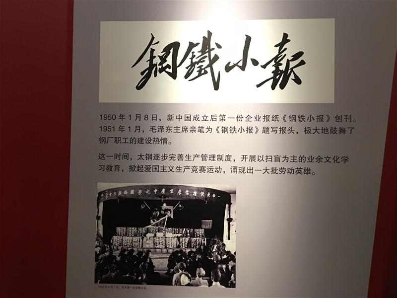 在“太鋼杯”全國冶金美術(shù)書法展覽上,得以觀賞來自四十余家冶金單位職工創(chuàng)作的油畫、國畫、版畫、真草行篆各類作品,讓人真切享受到一道文藝精神大餐。在太鋼廠史展覽館,代表們進(jìn)入了一場八十四年的時(shí)光之旅。仿制的青磚灰瓦的西北鋼鐵廠大門,孫中山、閻錫山先生的黑白影像,瞬間將人拉回到實(shí)業(yè)興華、產(chǎn)業(yè)報(bào)國的上世紀(jì)初。毛澤東曾為全國第一份企業(yè)報(bào)紙,即太鋼《鋼鐵小報(bào)》題寫報(bào)名,令人對(duì)太鋼新聞事業(yè)的歷史心生幾分羨慕。館內(nèi)的珠港澳大橋、軍艦、坦克、神舟三號(hào)、圓珠筆芯頭、手撕鋼等等元素,讓人更加驚嘆于太鋼產(chǎn)品在科技上的先進(jìn)實(shí)力。