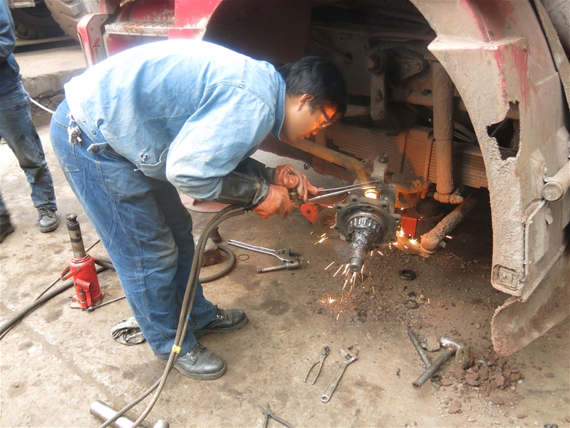 項(xiàng)目簡(jiǎn)介:翻斗車拋灑槽翻轉(zhuǎn)軸使用φ16mm圓鋼與6分鋼管組成。由于汽車大箱升起頻繁,且圓鋼強(qiáng)度不夠,圓鋼很容易變形。致使翻轉(zhuǎn)不靈活,造成拋灑槽變形,且槽內(nèi)物料常有存料,造成沿路拋灑。為了增加圓鋼強(qiáng)度,改用廢舊汽車鋼板卡子,加工成翻轉(zhuǎn)軸后,固定在大箱底部并與套有一定配合間隙,這樣既能增強(qiáng)了軸的強(qiáng)度,又使拋灑槽翻轉(zhuǎn)更靈活。不僅降低了費(fèi)用,每臺(tái)車可節(jié)約φ16圓鋼1米、減輕了員工的勞動(dòng)強(qiáng)度、解決了拋灑槽翻轉(zhuǎn)不靈,易變性的問(wèn)題而且
