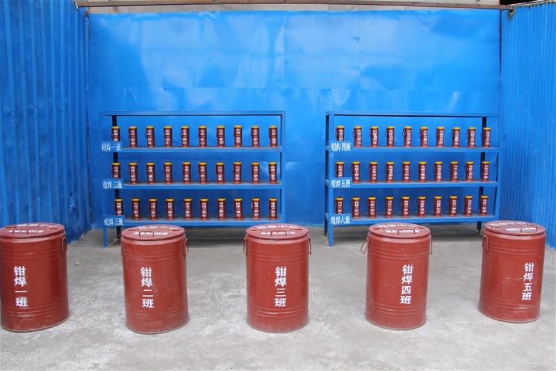 項(xiàng)目簡(jiǎn)介:制作焊條頭回收桶、焊條桶,員工焊接中將焊條放入焊條桶,焊完的焊條頭順便放回焊條筒,下班前集中倒入焊條頭回收桶。提高焊條的使用率,控制焊條頭長(zhǎng)度(≤5cm),避免焊條的過度浪費(fèi),使員工養(yǎng)成降本增效的習(xí)慣,且有利于現(xiàn)場(chǎng)環(huán)境的美化,回收的焊條頭可送公司廢鋼庫(kù)變廢為寶。此項(xiàng)目已在中心推廣。