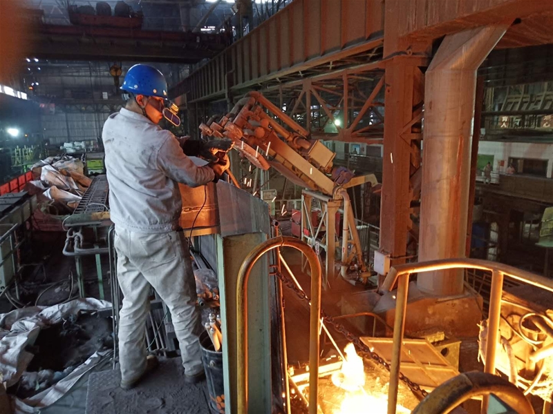 再苦再累不松勁。不論是刮風(fēng)下雨還是春夏秋冬,連鑄生產(chǎn)現(xiàn)場永遠(yuǎn)都被高溫灼烤環(huán)繞。而7月的連鑄現(xiàn)場在不透風(fēng)的廠房里儼然如同熱滾滾的“汪洋”???,臺(tái)上中包工一個(gè)個(gè)汗流浹背,汗水從安全帽底下流到臉頰,下巴上的汗珠一顆、一顆掉在地面。眼睛早已被汗水模糊了視線,他隨手用袖口一擦,眨了眨泛酸的眼睛,又繼續(xù)忙活。臺(tái)下3CT的切割工站在火紅的鋼坯旁,鎮(zhèn)定地用氧槍在切割尾坯,臉頰早已被灼烤的發(fā)紫,衣服被汗水澆透又被高溫蒸發(fā),留下一道道白色的汗?jié)n,而手里握著的割槍卻始終保持一個(gè)動(dòng)作,直到尾坯被割斷。雖然工作服已經(jīng)被高溫灼烤到燙手,腳上的勞保鞋里面全是汗水,但是他仍然沒有停止自己的工作,收起氧槍后,使勁吹了一下掛在脖子上的口哨,又繼續(xù)指揮天車開始吊運(yùn)尾坯。