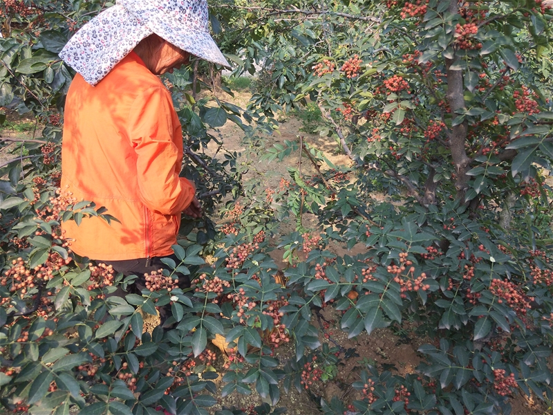 岳父有三分花椒地,栽種了四十余株。由于椒量不大,雇工采摘不合算,于是,每年流火的七、八月,岳父便召集親戚幫忙,一同采椒。