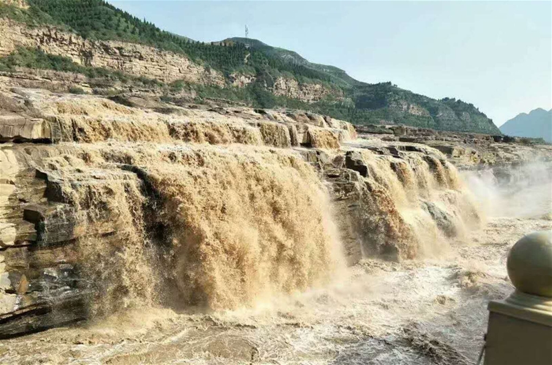 壺口瀑布西岸為陜西省延安市宜川縣壺口鄉(xiāng),東岸是山西省臨汾市吉縣壺口鎮(zhèn),為兩省共有的國家4A級旅游景區(qū)。壺口瀑布是中國第二大瀑布,世界上最大的黃色瀑布。黃河奔流至此,河口收束狹如壺口,故名壺口瀑布。從韓城市區(qū)出發(fā),沿108國道、沿黃公路一路向北,大約兩小時車程,進入壺口景區(qū),遠遠的,黃河的吼聲已是如雷貫耳,購票進入,兩岸游人如織,河灘大石上也已站滿了人。拍照,到處都是美景,面對似從天降的黃河之水,如天河決口,似大海倒懸,咆哮噴涌,由平地直撲而來,又迅疾跌入谷底,我佇立良久、默默無語,任憑飄散的水霧撲面而來,深呼吸著混有泥土的味道。壺口蜿蜒向下,猶如大地撕開的胸膛,巨量的黃河水傾瀉而下,十里龍槽波濤翻滾,如千軍萬馬咆哮怒吼,如天塌地陷大地顫抖。此時,任何華麗的詞語,都無法準(zhǔn)確形容這雄渾壯觀的場面,任何高亢的贊美,在這里都顯得蒼白、輕如鴻毛。我也仿佛理解了冼星海譜寫《黃河大合唱》時的激情,理解了作家詩人常常用此比喻堅強不屈的中華兒女,反抗壓迫、抗?fàn)幥璧木瘛?/span>