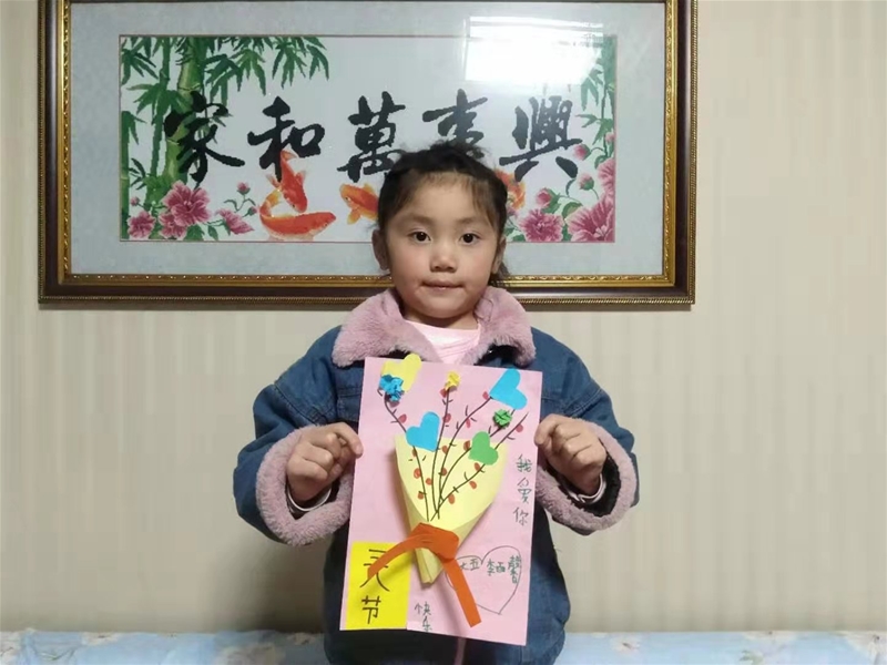 “自己的事情自己做,媽媽的事情搶著做……”下班剛走到樓梯上,就聽見(jiàn)女兒歡快的聲音從屋里飄到了樓道里,我一邊欣賞著這份美好,一邊拿鑰匙開門,剛把鑰匙插進(jìn)去,女兒便打開了門,笑盈盈地送上了她在學(xué)校完成的手工作品——一幅美麗的紙畫,那是用彩色紙做成的,一朵朵小花和愛(ài)心粘在彩色紙上,里面用油畫棒畫著美麗的枝丫,上面還有女兒地字體“媽媽,三八節(jié)快樂(lè),我愛(ài)你!”一邊雙手遞到我的面前,一邊甜甜地說(shuō):“媽媽節(jié)日快樂(lè)!”此刻我真的驚呆了,心中不由泛起一絲激動(dòng)和感動(dòng)。接過(guò)女兒手中的禮物,我重重地在她的臉頰上親了一口。隨后,她又把拖鞋拿到我的跟前說(shuō):“媽媽請(qǐng)換鞋”,待我換好鞋,她又把我上班的鞋子擺放好。手拉著我坐到沙發(fā)上,一邊幫我捶背,一邊唱:“我的好媽媽,下班回到家,工作了一天多么辛苦呀,讓我親親你吧,讓我親親你吧,我的好媽媽……”女兒地小拳頭敲打在酸困得肩膀上,小嘴親在我的臉頰上,我的心里頓時(shí)樂(lè)開了花,我多么希望時(shí)間可以駐足在此刻!