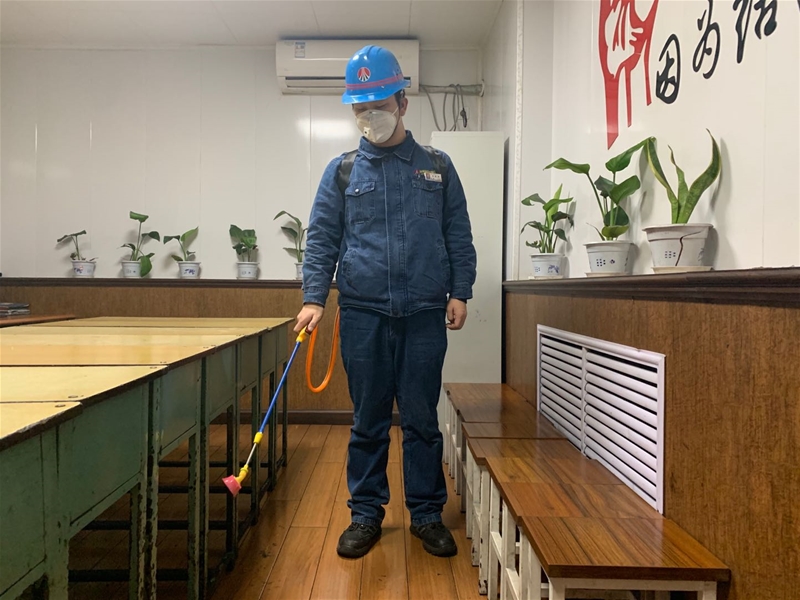當(dāng)?shù)弥咔閬硪u,作為一名見習(xí)安全員,他主動向作業(yè)區(qū)領(lǐng)導(dǎo)申請參與防疫工作。為了將疫情防控工作做扎實,確保作業(yè)區(qū)防疫措施到位,每天他都背著15升的消毒噴霧機,對作業(yè)區(qū)各個區(qū)域、角落進(jìn)行全面消毒;堅持每天密切關(guān)注職工健康和口罩發(fā)放情況;為了讓大家更好地了解防疫知識,他主動制作防疫小視頻,利用微視頻宣講、微信小知識向作業(yè)區(qū)員工講解疫情防控知識;并與受疫情影響未上班的同事進(jìn)行電話聯(lián)系,詳細(xì)詢問身體情況,安撫情緒。