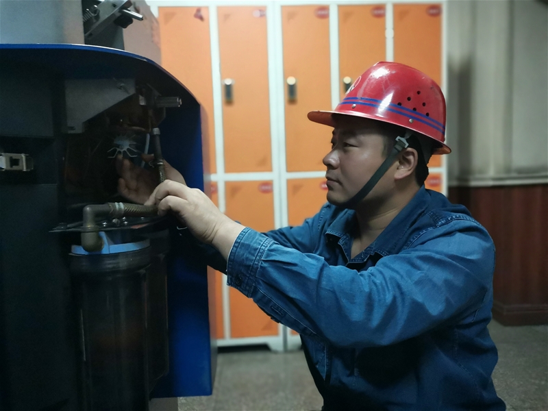 晚上8:00,操作間依然機(jī)器轟鳴,現(xiàn)場(chǎng)一片忙碌景象。班長(zhǎng)楊博頂著四十多度的高溫,認(rèn)真仔細(xì)排查設(shè)備隱患。在大家心目中,他是一位資深的光譜維修“醫(yī)生”。憑著自己的專(zhuān)業(yè)能力,他能夠及時(shí)判斷出設(shè)備問(wèn)題的癥結(jié)。這不,他正針對(duì)光譜儀排氣不暢、氬氣排氣管路堵塞、火花室下部的彎頭內(nèi)有異物的故障,巧妙采用更換排氣管和透明塑料管的方法,并定期對(duì)排氣管路進(jìn)行吹掃,取得了良好效果。