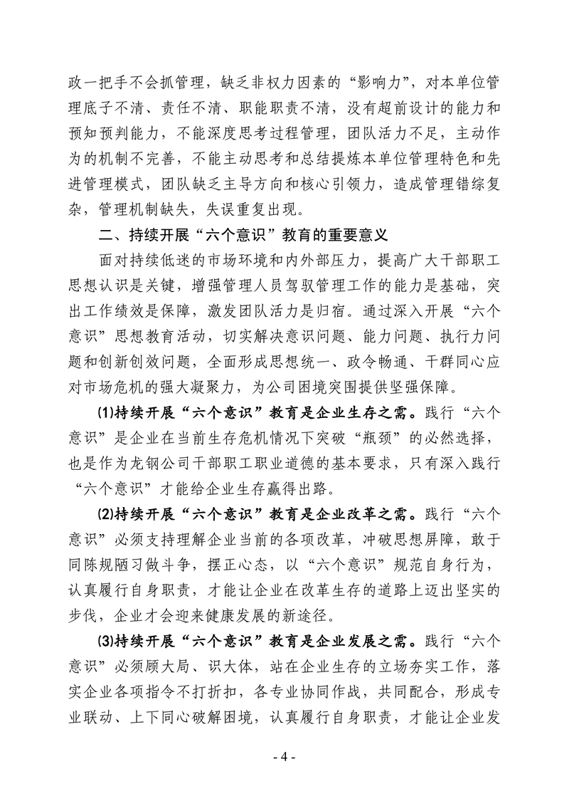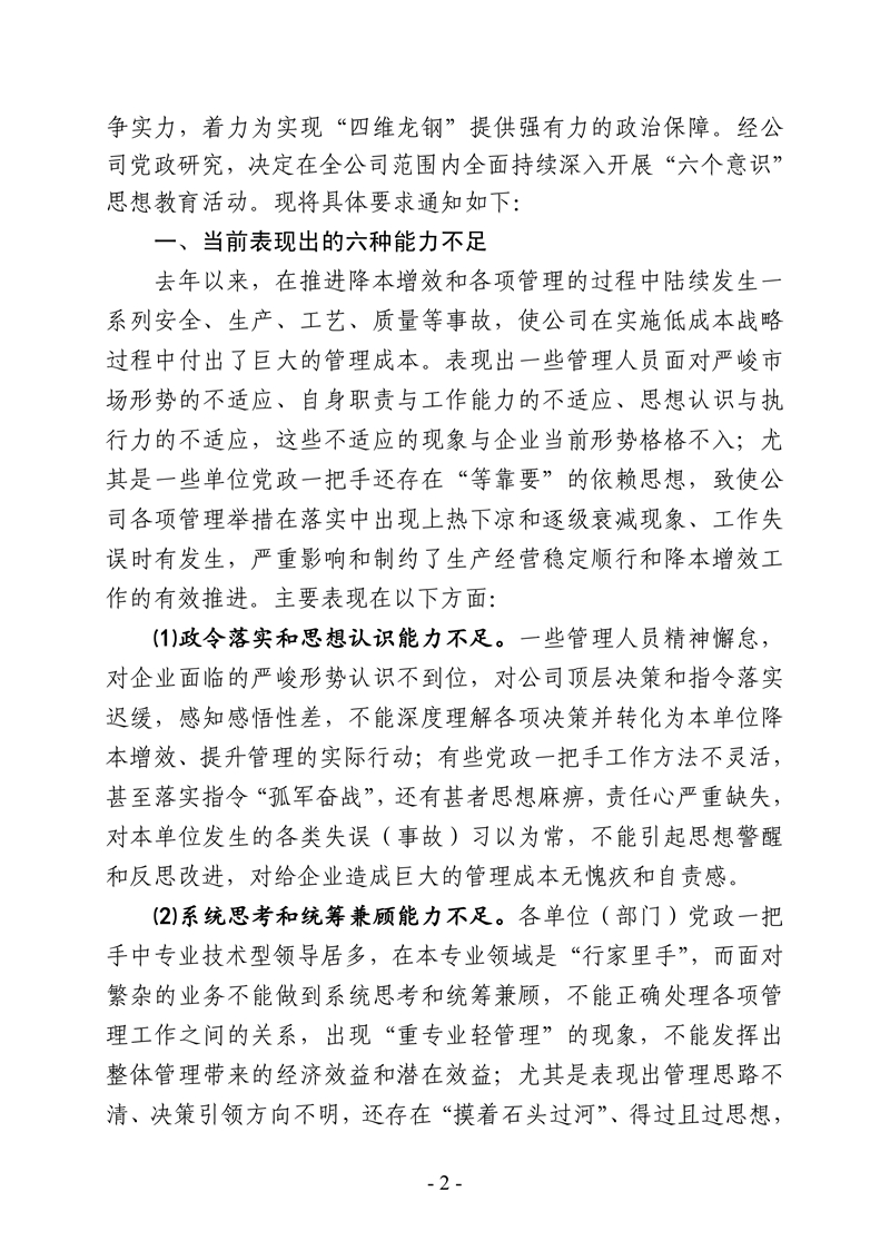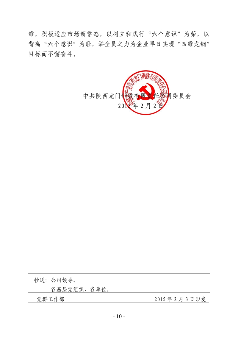 中共陜西龍門鋼鐵有限責(zé)任公司委員會(huì) 關(guān)于深入開展“六個(gè)意識(shí)”思想教育活動(dòng)的通知
